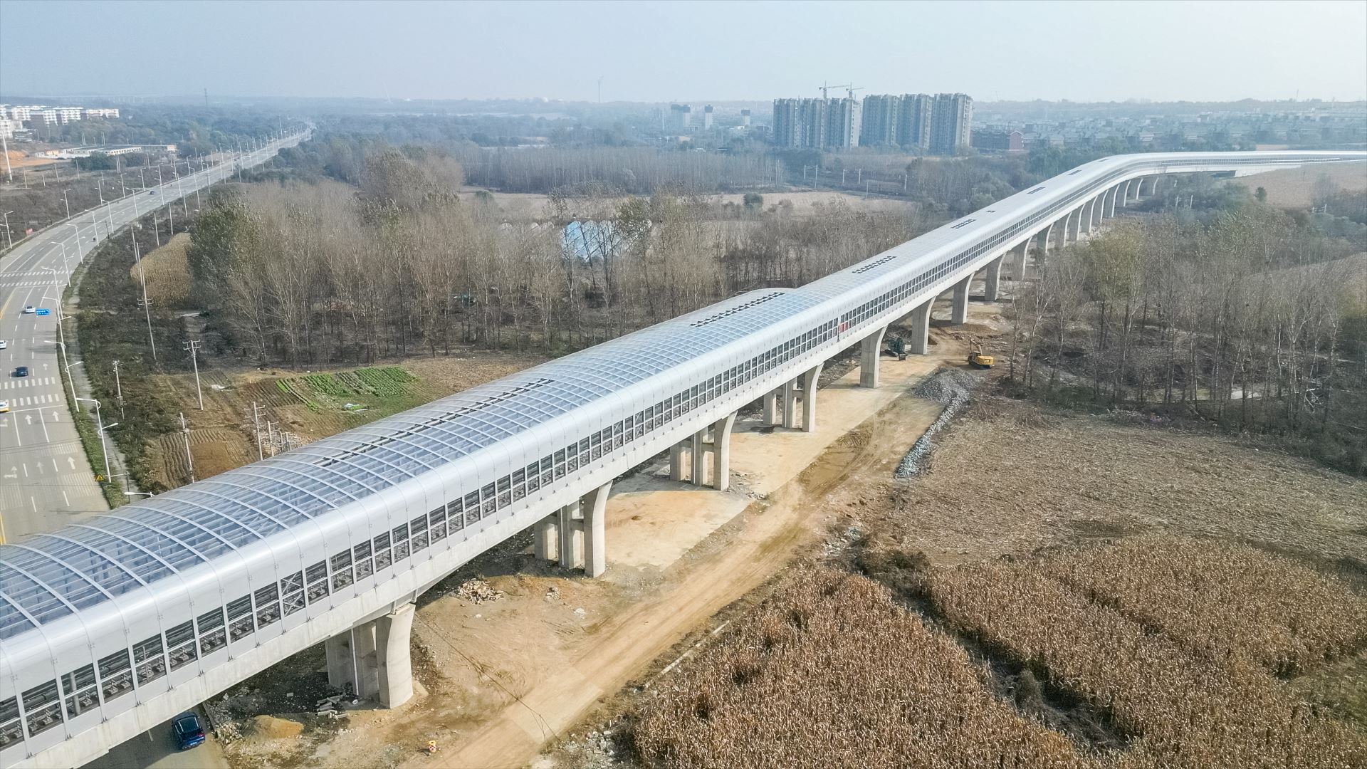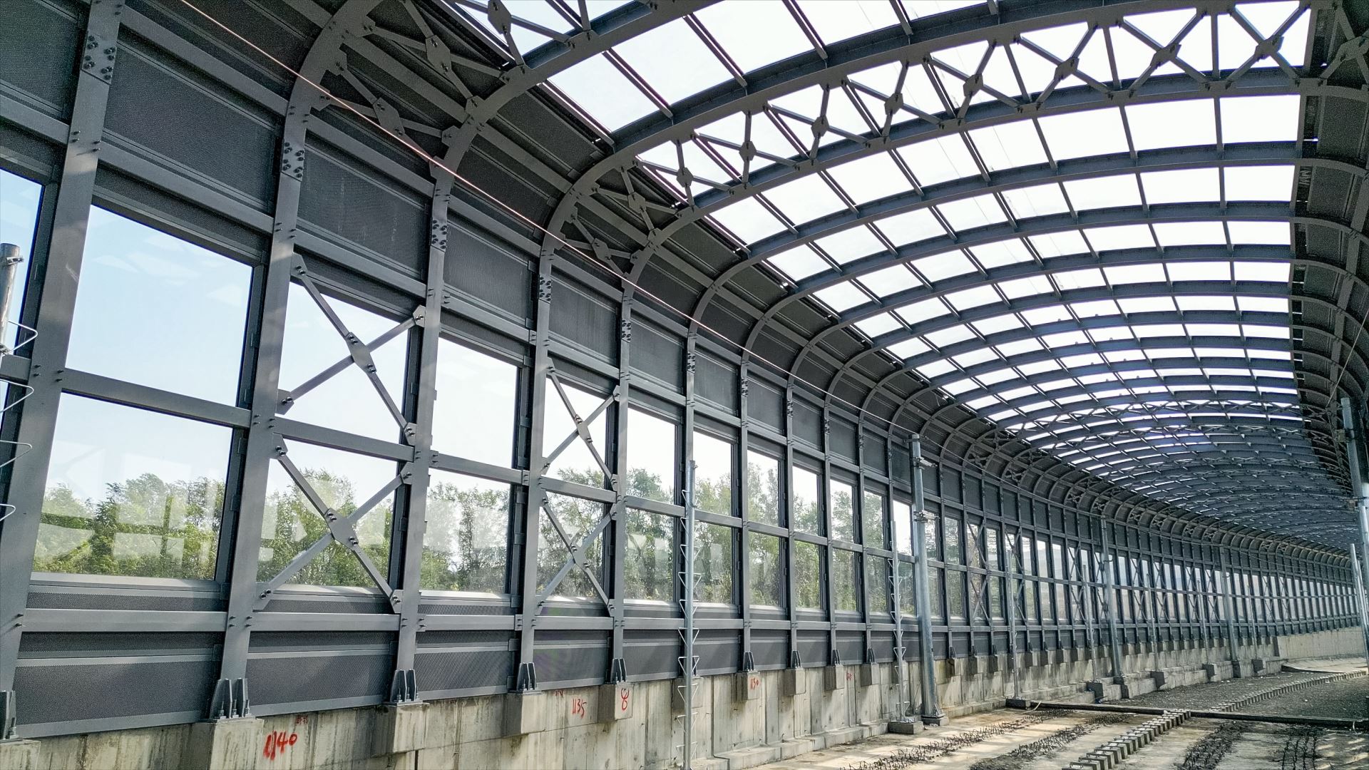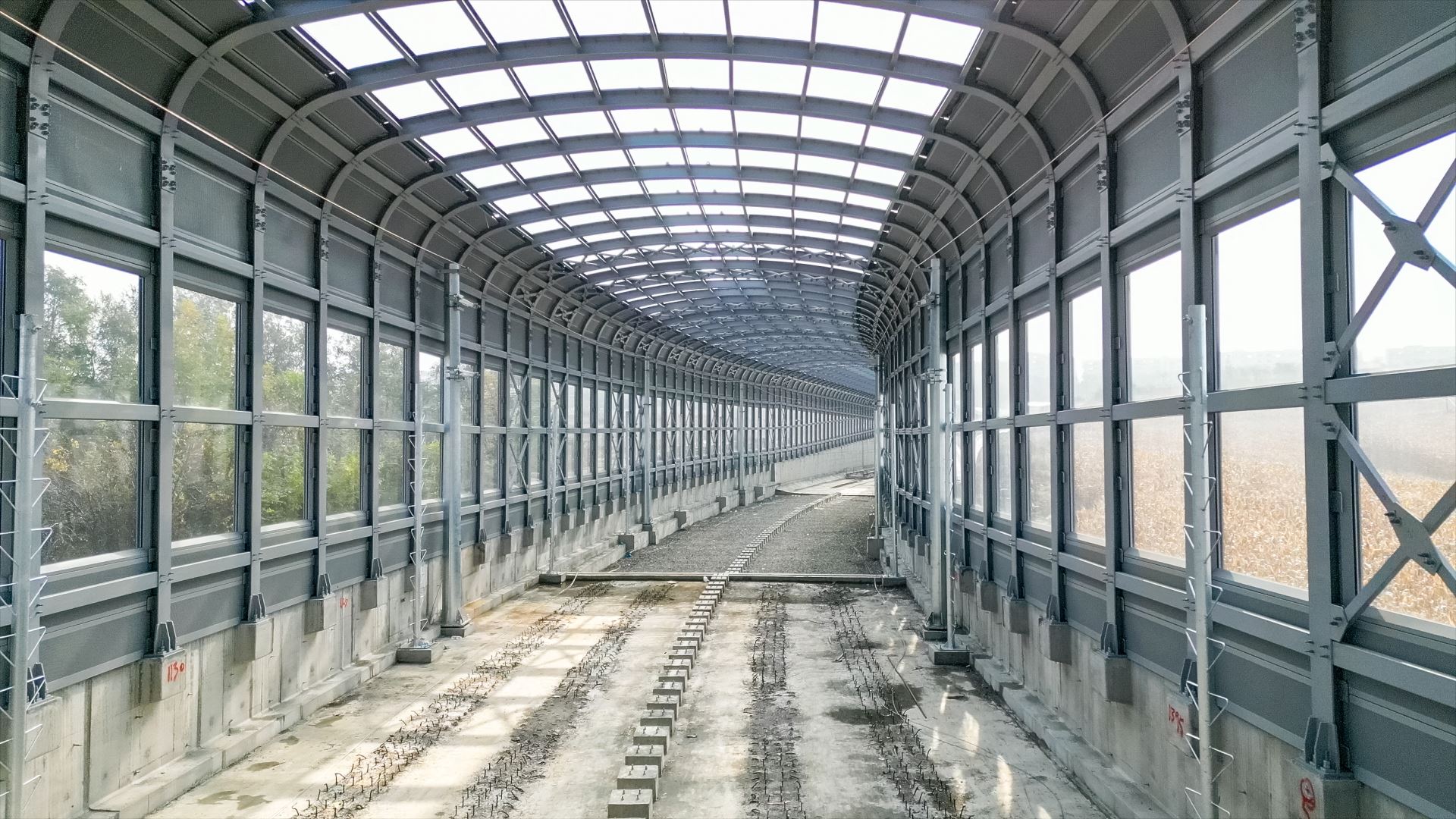 该项目位于沈阳市浑南区地铁一号线出入口,全封闭声屏障总长度554m,交付面积约11500㎡。含U型槽和高架桥梁两种施工基础,U型槽段长158m,高度由2.5m渐变至7.3m;桥梁段长396米,高7.3m。