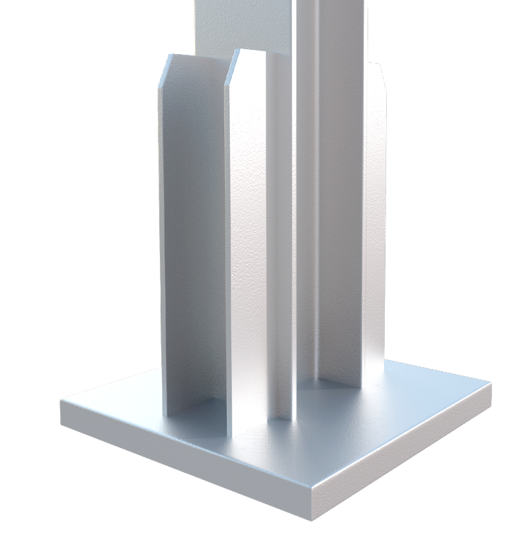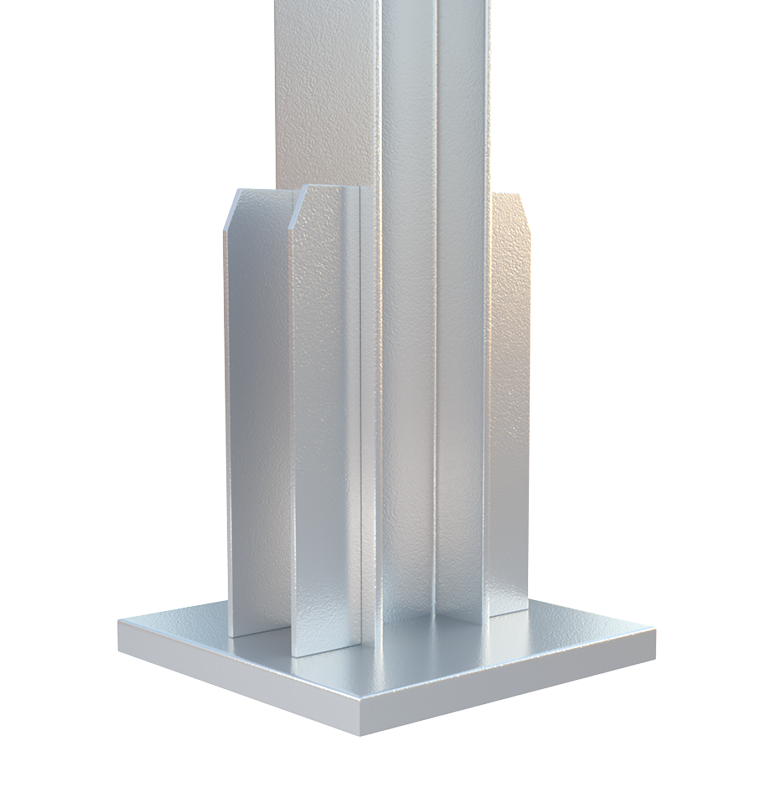 根据国家标准、规范及工程项目对钢立柱产品寿命更高的需求,设计新型 80 年抗疲劳结构,解决传统结构中焊缝的应力集中区,突破传统 50 年钢立柱的疲劳瓶颈。